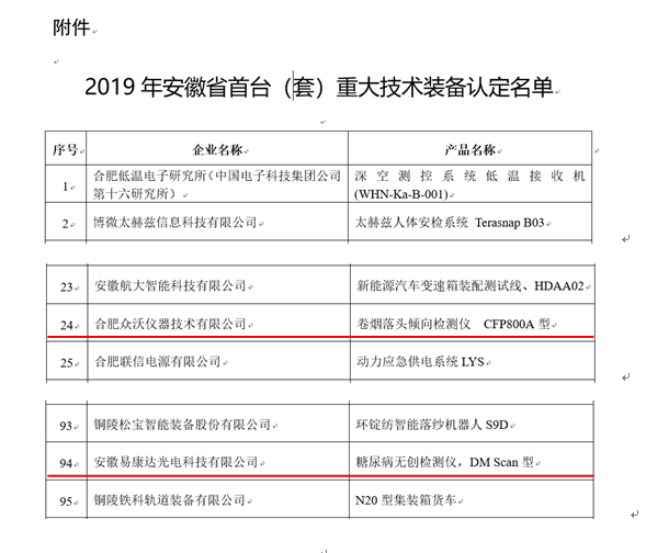 链接:关于公布2019年安徽省首台(套)重大技术装备名单的通知