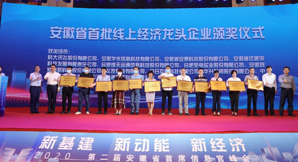 6月19日,以“新基建新动能 新经济”为主题的2020年第二届安徽省首席信息官峰会在合肥隆重举行。峰会现场,创新院孵化企业安徽中科美络信息技术有限公司被授予“安徽省首批线上经济龙头企业(平台)”称号。此次评选由安徽省经济和信息化厅发起并认定,旨在抢抓新基建机遇、加快发展安徽线上经济。