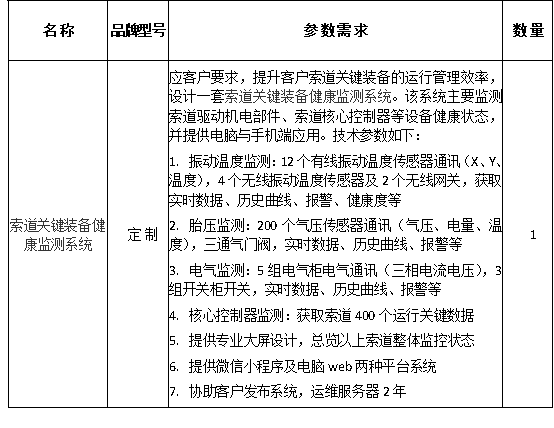 我院因产学研需要,拟采购一套索道关键装备健康监测系统,通过询价方式,特向有供货能力的合格供应商进行询价,有关具体事项如下: