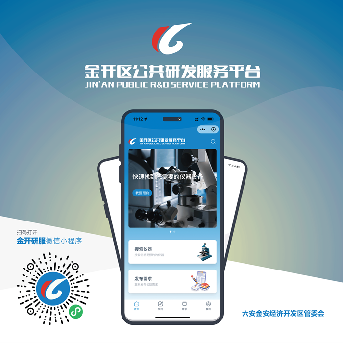 金安经济开发区公共研发服务平台由安徽工业技术创新研究院六安院管理运行,以微信小程序为载体,集搜索仪器、发布需求、设备预约等多种功能于一体,类似于购物软件,手机上逛一逛、淘一淘、点一点,就可以获得你想要的科研仪器、科创资源,在园区内部实现指尖上的共享。