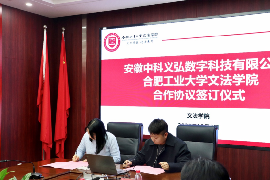 2025年12月3日上午,六安院在孵企业安徽中科义弘数字科技有限公司与合肥工业大学文法学院在合肥工业大学屯溪校区学术会议中心顺利举行合作协议签约仪式。六安市政府副秘书长、六安院院长胡坤出席活动并见证签约。