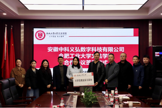 在与会人员的共同见证下,双方正式签署合作协议,并为“合肥工业大学大学生就业实习基地”揭牌。该基地的设立,不仅为法学院学生提供了宝贵的专业实践平台,也为企业精准对接专业人才、深化产学研融合奠定了坚实基础。